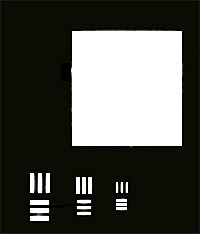 Oštrina je visoka, rubovi su dobro definirani, ali razlučivost je niska, linije koje su na test slici odvojene ovdje su stopljene i zajedničke blokove.